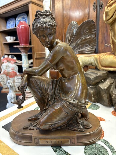 A lovely bronze sculpture entitled ‘Nymph’, by E. Laurent, 19thC. This is a nice antique bronze sculpture by Eugène Laurent, entitled ‘Psyche’, cast in bronze and featuring only a beautiful patina