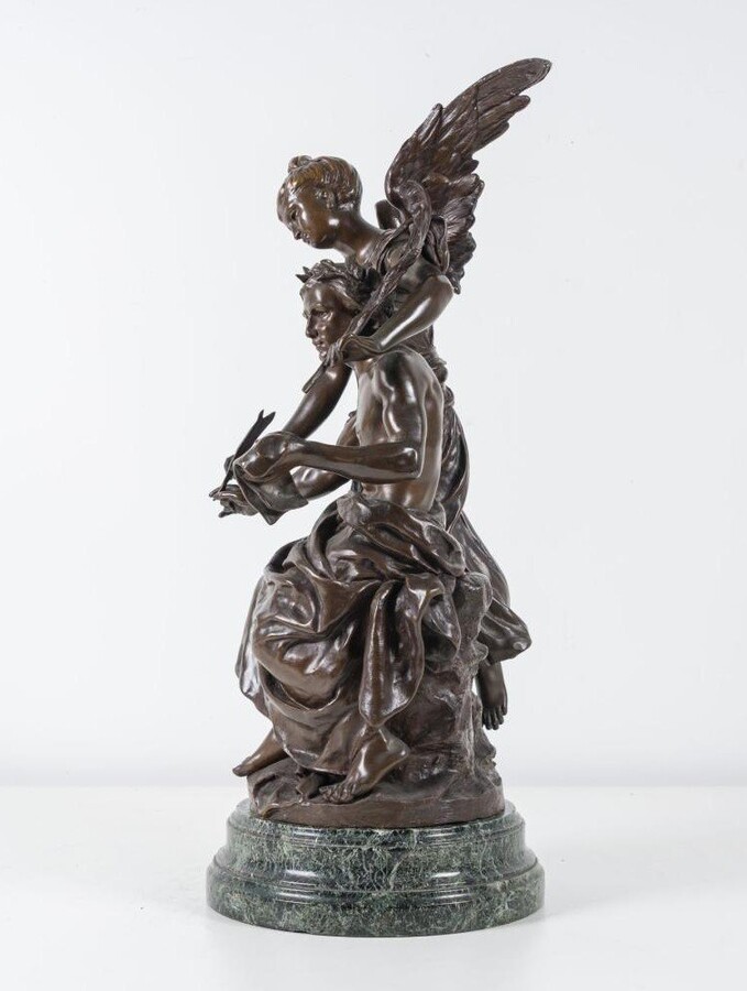Bronze sculpture ‘Allegory of the Arts’ by Henri Plé 19th century. Double sculpture in bronze with brown patina resting on a marble base ( old restoration ) Signed by Henri Honore Plé ( Paris 1853-1922 )