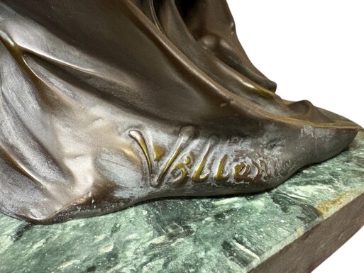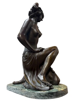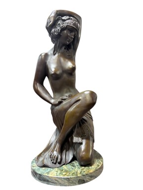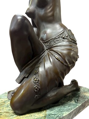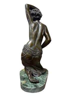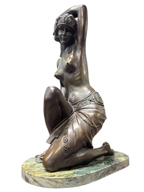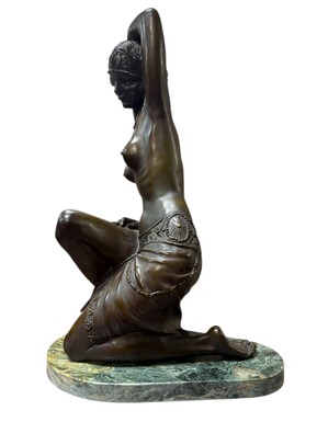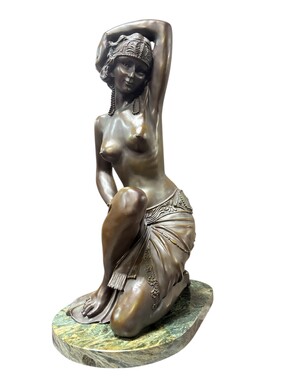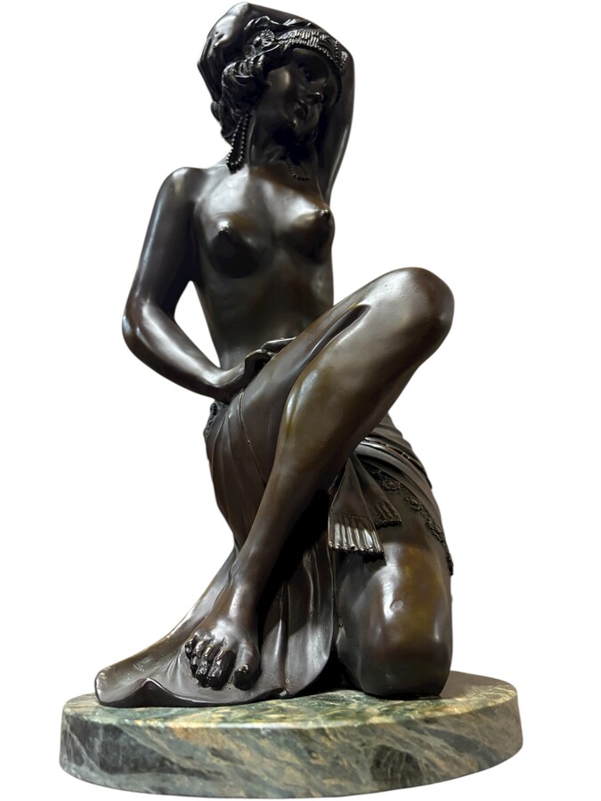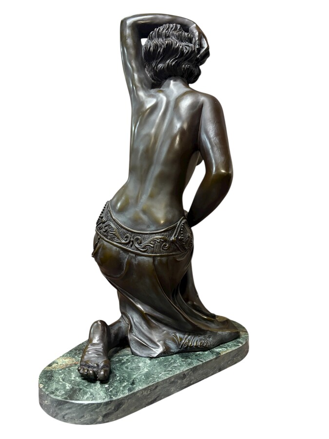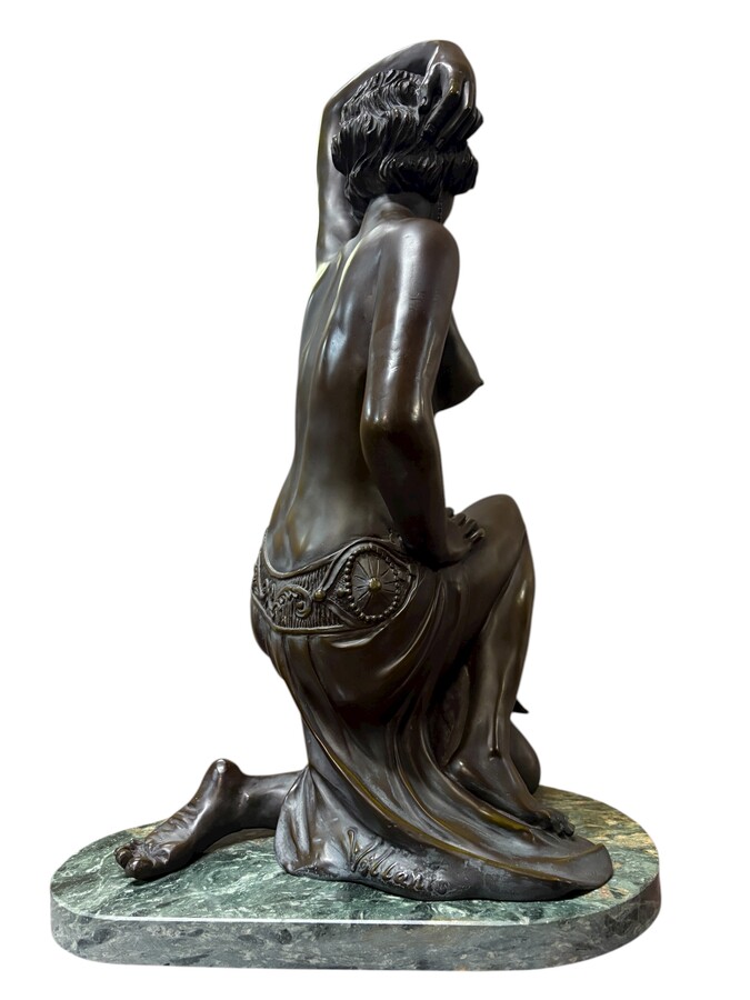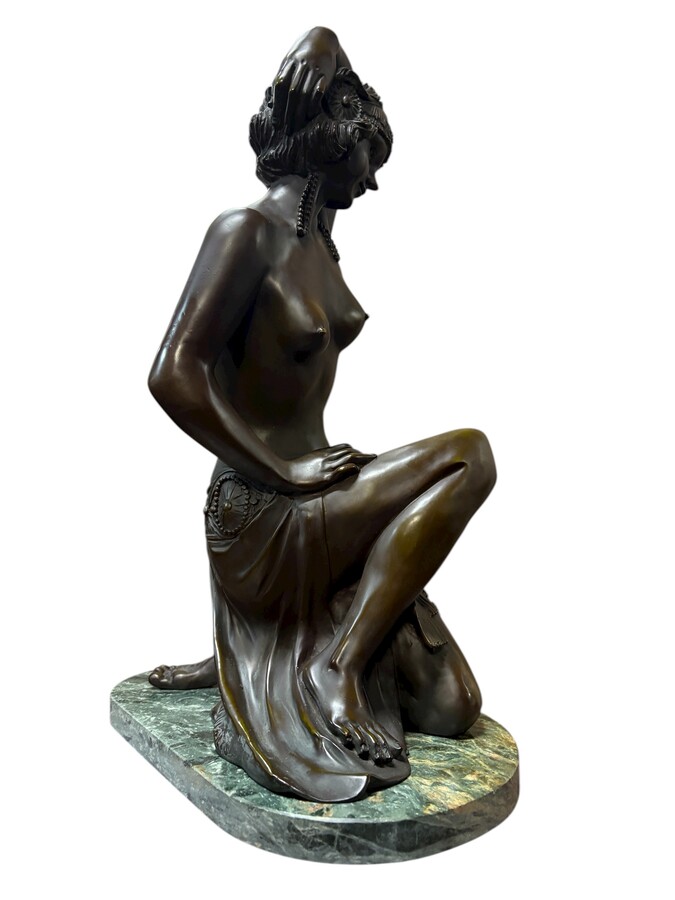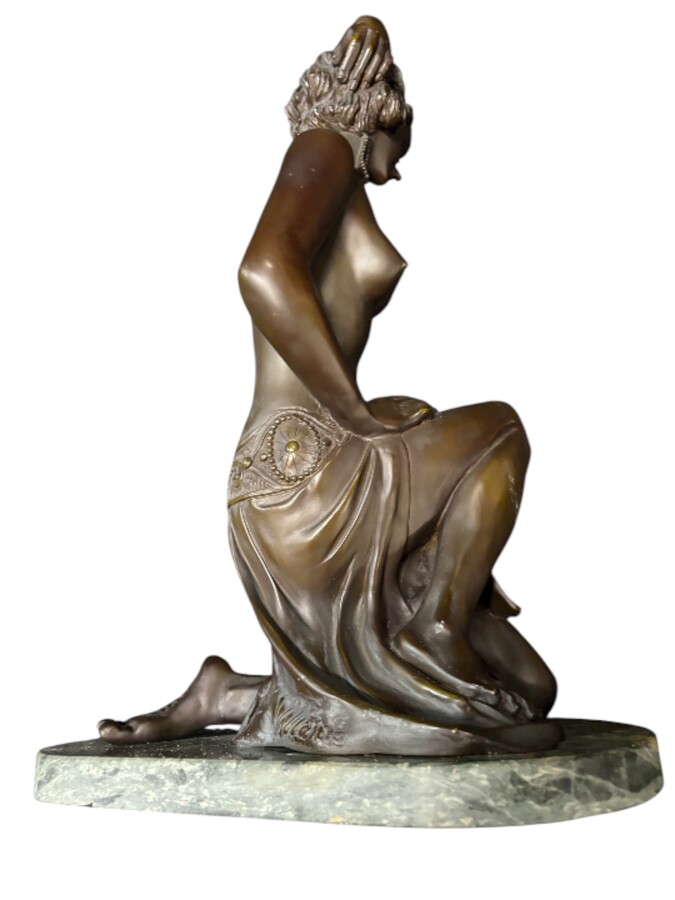 Elegant 20th-century bronze sculpture entitled ‘Oriental Lady’. Attractive bronze sculpture depicting an oriental lady kneeling, mounted on a marble base. Signed on the back: Villanis. Art Deco style , mid 20thC.