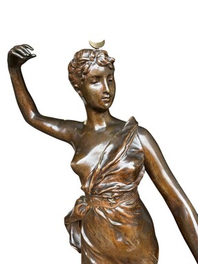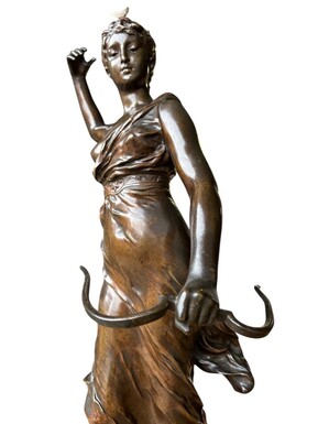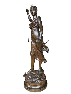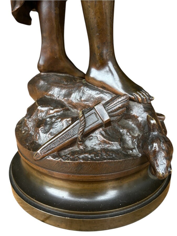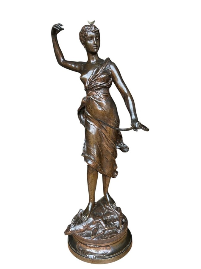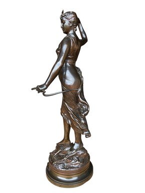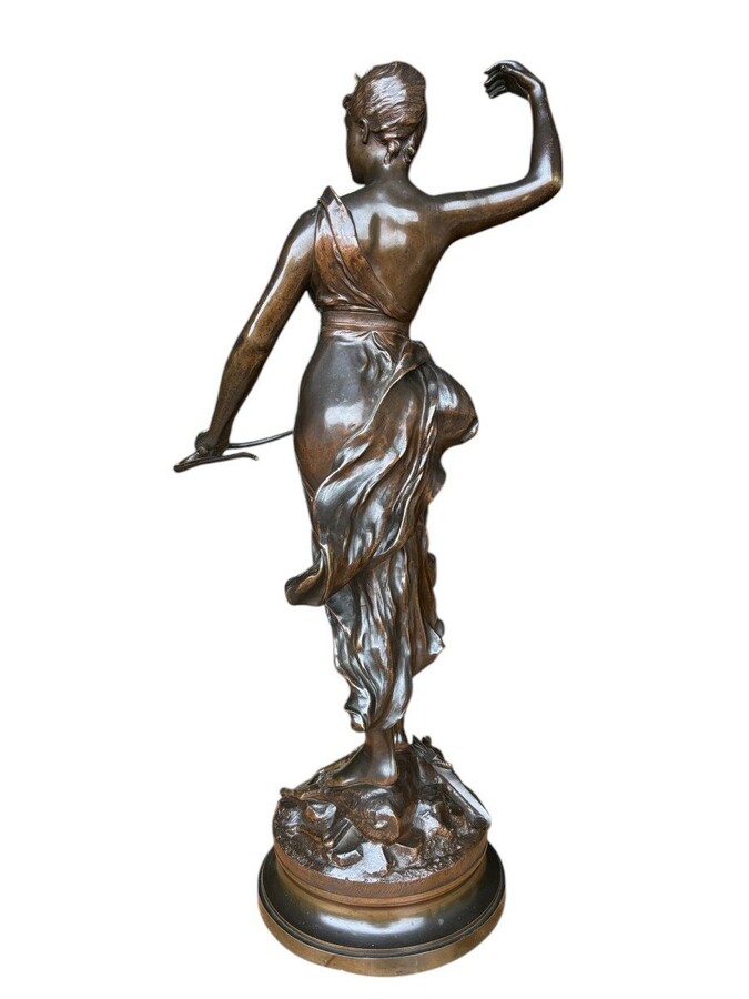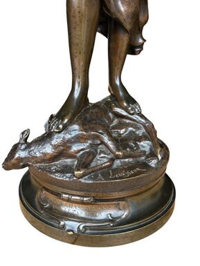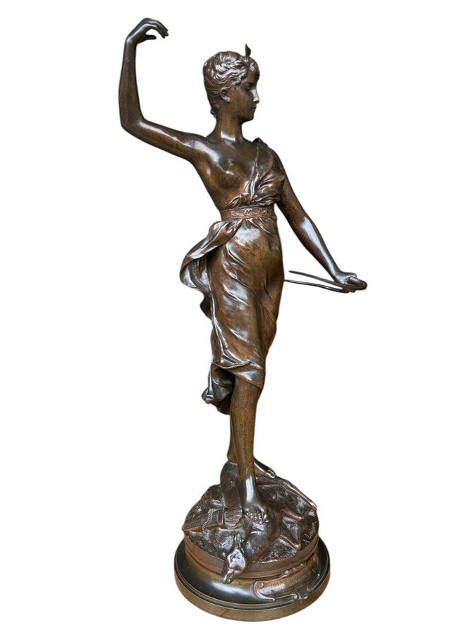 Large 19th century bronze sculpture of Diana the Huntress ( 73 cm ) Beautiful sculpture representing Diana standing over her prey shot with a bow and arrows. Signed by A.Levasseur ( Henri Louis Levasseur , Paris 1853-1934)