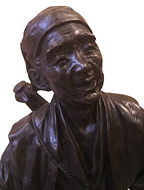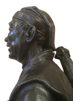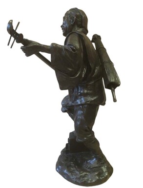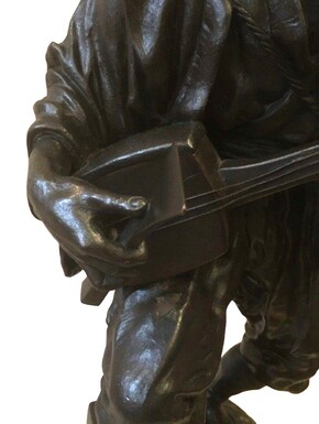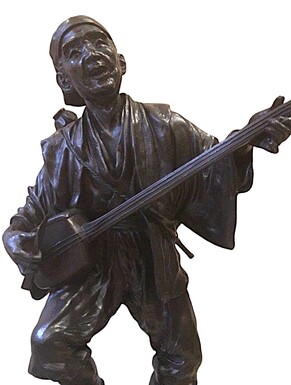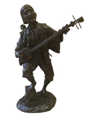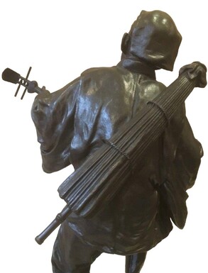 Large Japanese bronze "musician" 19thC. Sculpture is signed and very finely detailed. Height: 61 cm Width: 40 cm