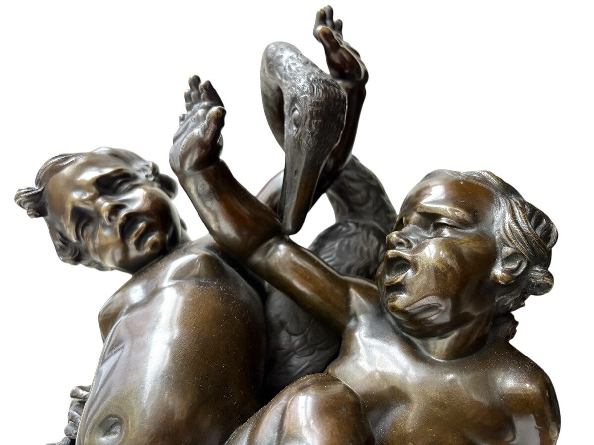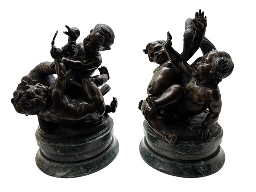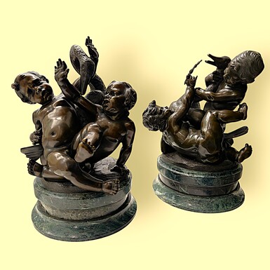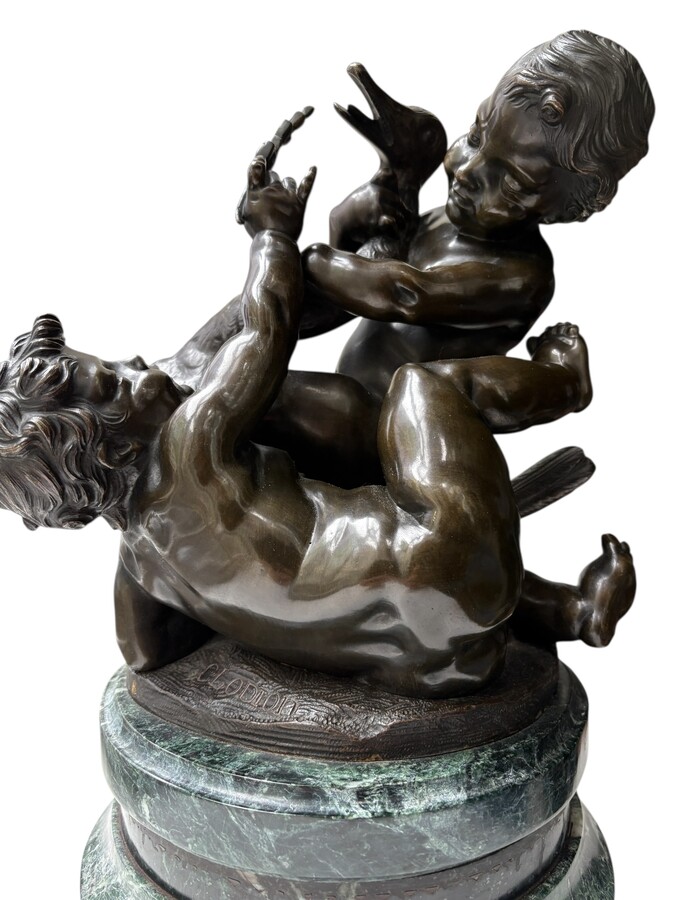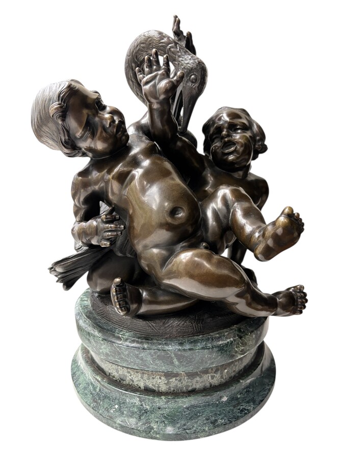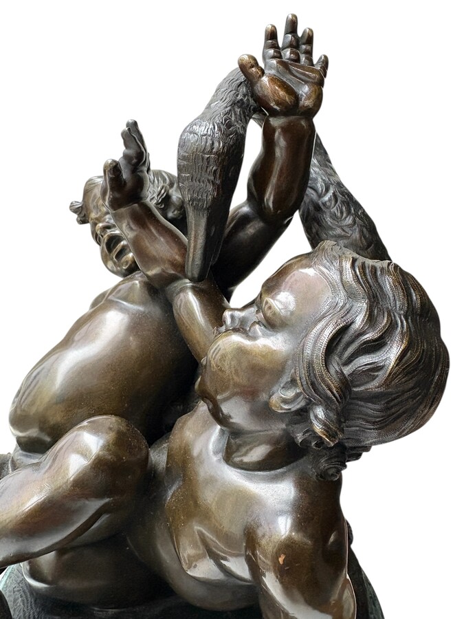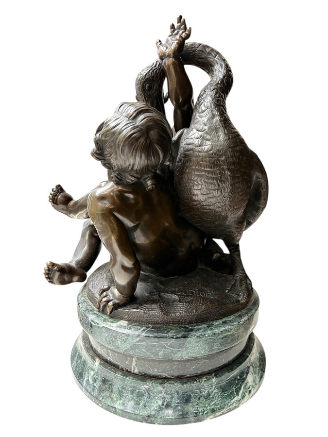 Pair of bronze sculptures ‘putti with swan’ after Clodion, 19th century Attractive pair of decorative bronze sculptures mounted on a marble base. Both sculptures are signed Clodion / Cresson éditeur.