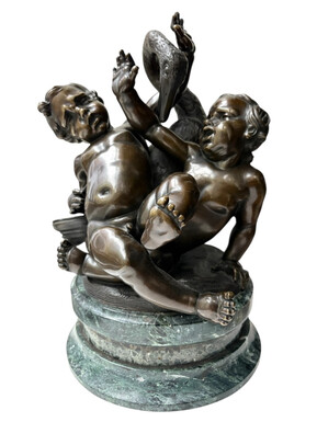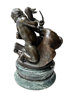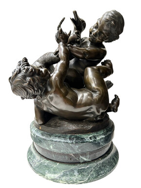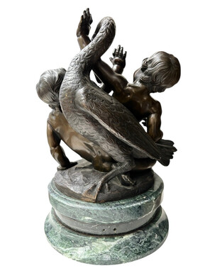 Pair of bronze sculptures ‘putti with swan’ after Clodion, 19th century Attractive pair of decorative bronze sculptures mounted on a marble base. Both sculptures are signed Clodion / Cresson éditeur.