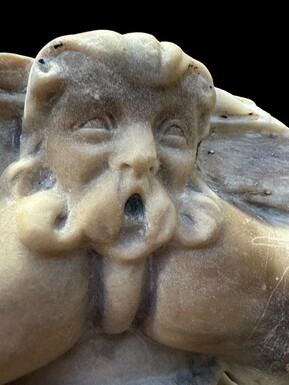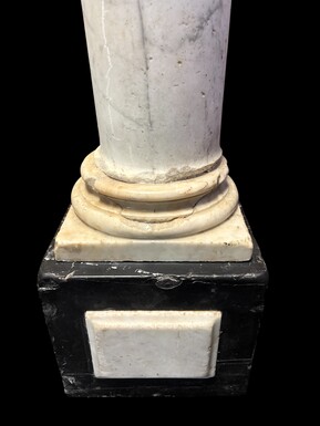 17th-century Renaissance marble fireplace. Beautiful columns from a Renaissance-era fireplace, in the Flemish style, dating from around 1600. Two white marble columns with Corinthian capitals, adorned with mythological figures