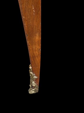 Elegant Louis XV-style veneered wooden desk, 1900 The desk features 5 drawers, bronze fittings and decorations, and a brown leather top. The desk is in good condition but requires refurbishment. Dimensions: Width: 140 cm Height: 76 cm