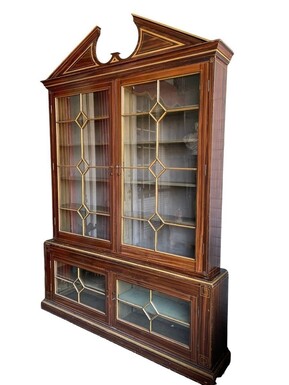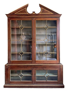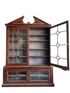 Large Very decorative 4-door library circa 1900 Nice large painted Library in Empire style consisting of 2 parts with following dimensions : Height : 280 cm ( 243 without tympanum ) Width : 199 cm Depth upper part : 26 cm Depth bottom : 36 cm