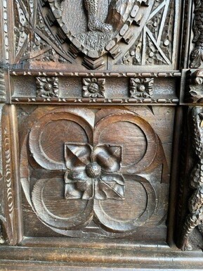 Special Scottish Furniture In Renaissance Style 19th Century. Decorative Oak Cabinet With 2 Doors, All Kinds Of Carvings, Medallions And Decorations. Scottish Cabinet Circa 1800-1820 In Good Condition With Normal Signs Of Use.