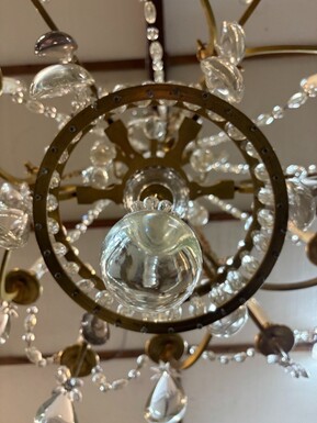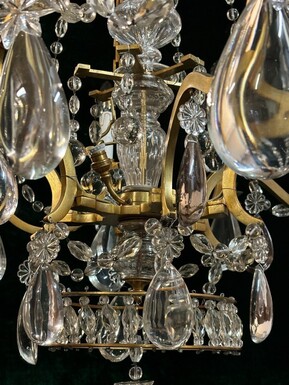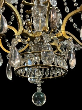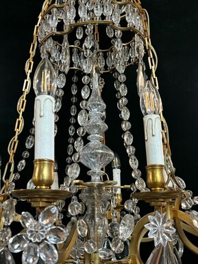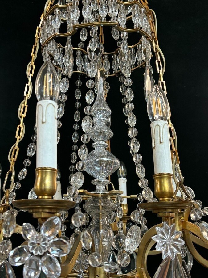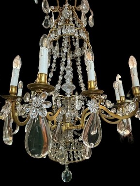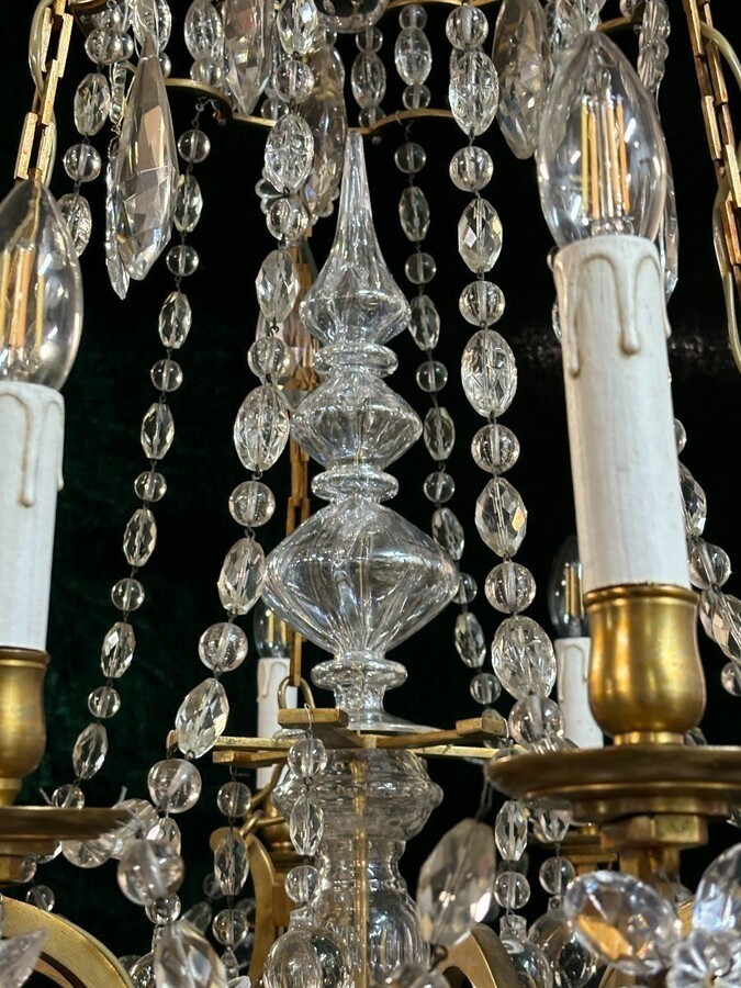 Nice Large Chandelier In Bronze And Crystal Late 19th Century. The Chandelier Has 10 Light Points On The Outer Rim And 6 Light Points Inside. Wiring Has Been Renewed And Is Therefore In Good Condition.