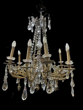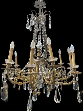 Nice, Late 19th Century LXVI Style Bronze/Crystal Chandelier. Bronze Frame Decorated With 10 Arms/Luminous Points, Bronze Decorative Elements, A Crystal Spike At The Top And Numerous Crystal Spokes. Dimensions: Height : 106 Cm Width : 80 Cm