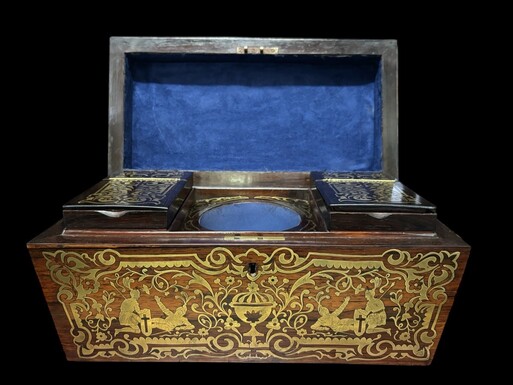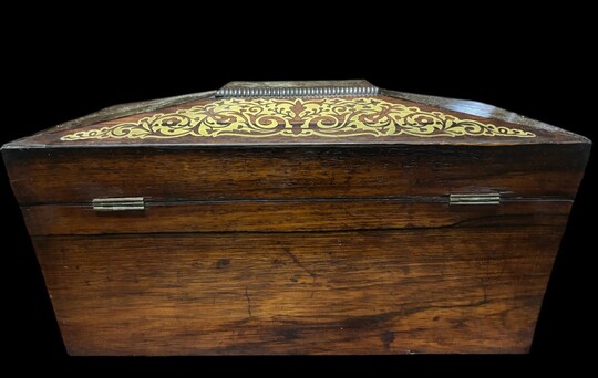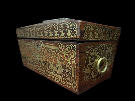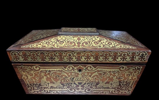 19th century Boulle marquetry tea caddy. Beautiful decorative tea caddy with fine Boulle marquetry decoration. Dimensions: Width: 38cm Height : 20cm Depth : 19,5 cm In very good condition, 19th century key missing