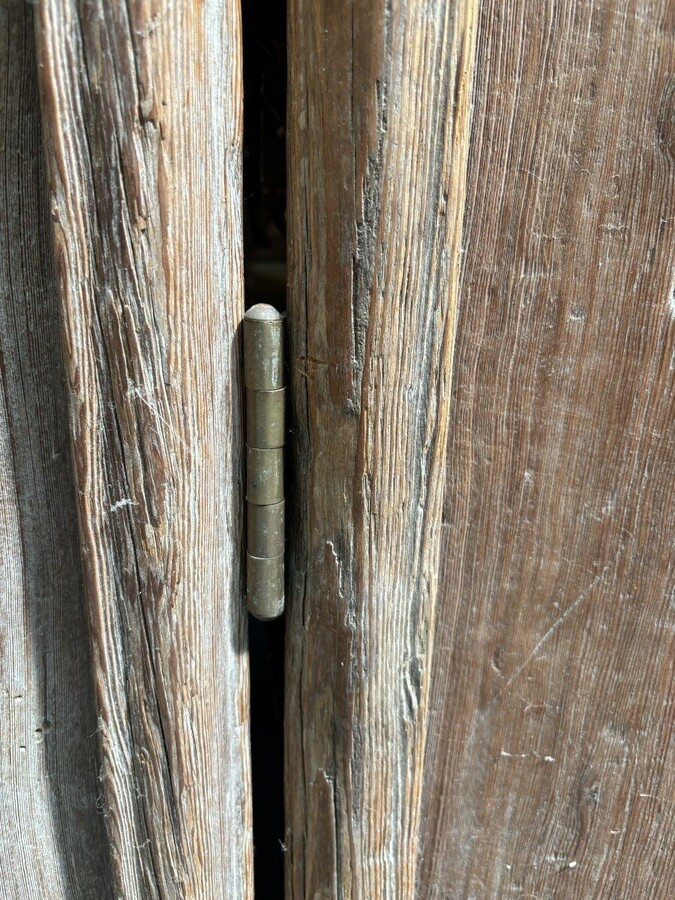 Large , decorative 4-piece door in solid wood 19thC. The doors have openwork panels at the top and closed panels at the bottom and have their original wrought iron fittings and a beautiful natural patina Dimensions : Height : 278 cm Total width : 240 cm