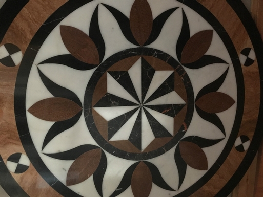 Large inlaid marble medallion 20thC. Can be used as a floor decoration or as a table top. Diameter: 1.20 m Thickness : 2 cm In good condition.