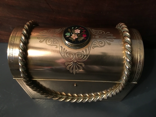 A signed Napoleon III style Box in bronze with pietra dura medaillon on top. London ,19th Century, signed by Howell James London in good condition for sale in Miscellaneous | Navarro Antiques