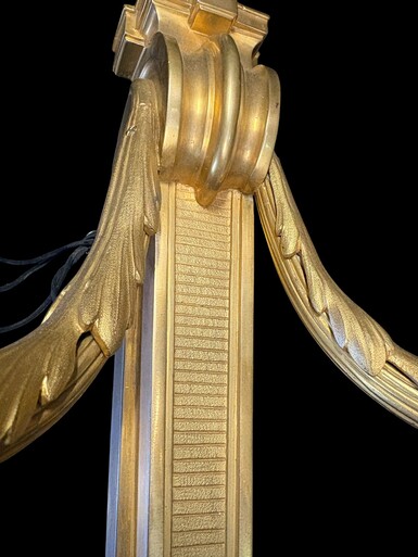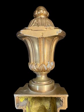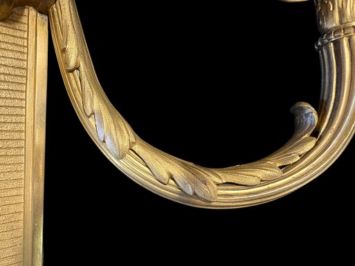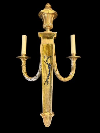Pair of large Louis XVI-style bronze wall sconces, 19th century High-quality bronze wall sconces, chiselled, featuring an elegant design with two light points and a vase crowning the ensemble Dimensions: Height: 62 cm Width: 42 cm Depth: 22 cm