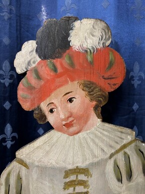 Pair of painted wooden chémineé guardians, 18th century Highly decorative painted pinewood sculptures inscribed with German texts. Dimensions: Height: 94 / 95 cm Width : 35 / 36,5 cm Depth : 16 cm In good condition, Germany, late 18th century