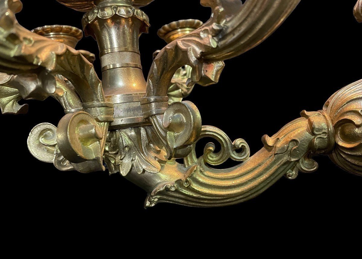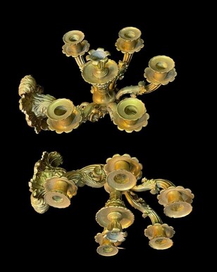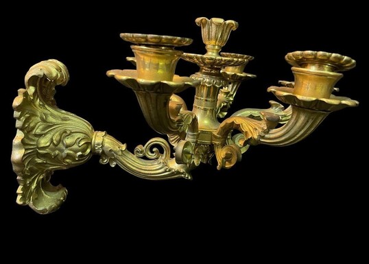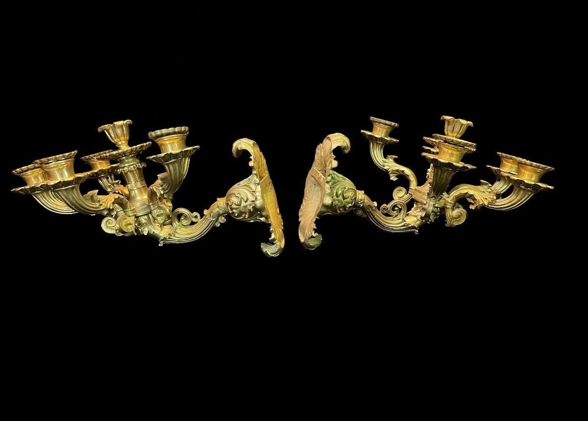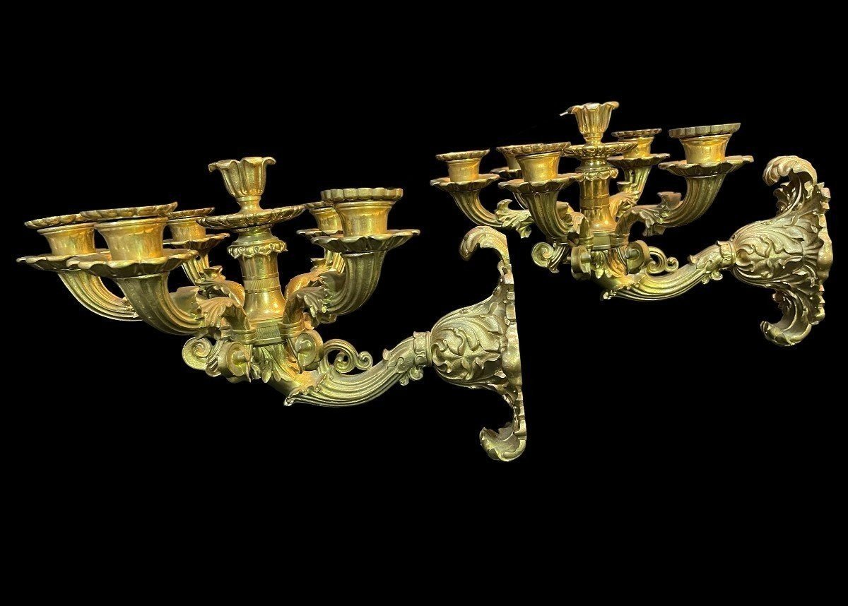 Pair Of Restoration Style Gilt Bronze 6-Light Sconces. They Are In Very Good Condition With The Following Dimensions: Height : 23 Cm Width : 29 Cm Depth : 35 Cm Nice Pair Of Sconces From The 19th Century.