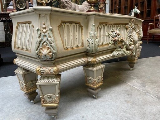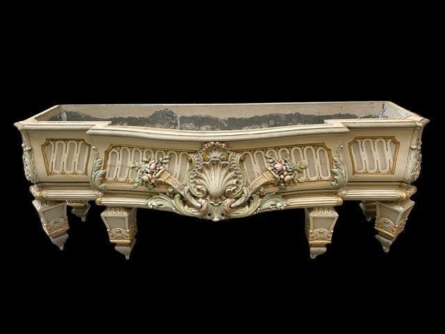 Very Large Wood Carved Flower Box 19th Century ( 166 Cm ). Very Decorative Jardinière In Louis XVI Style With An Inner Tray Of Zinc. Dimensions : Width: 166 Cm Height: 64 Cm Depth: 54 Cm In Good Condition From About 1860-1880