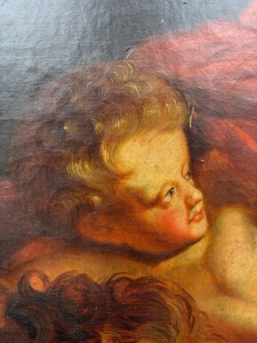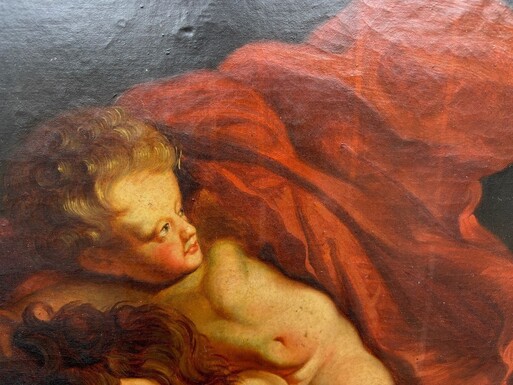 Decorative painting ‘Christopher and Christ’ oil on canvas early 19th century. Based on an example of a work by Peter Paul Rubens, Christopher and Christ, 1612-1614, which is in the Cathedral of Our Lady of Antwerp