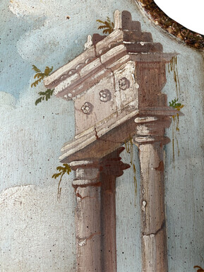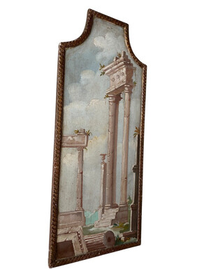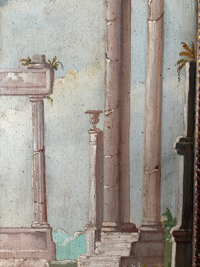 Landscape painting of ruins in Italy, Grand Tour, 19th century. Beautiful decorative oil painting on panel with gilt frame. Dimensions: Height: 91 cm Width: 39 cm Depth: 2 cm In good 19th century condition.