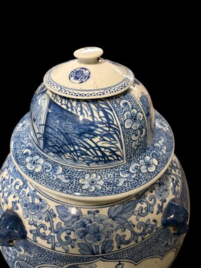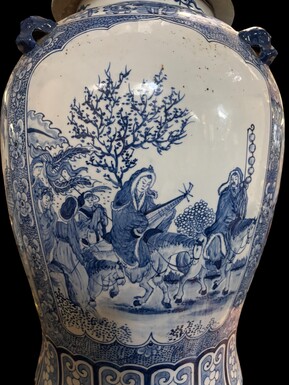 Large Chinese porcelain vase with lid, 20th century Decorative vase painted with various representations of people, animals, etc. Vase in very good condition, signed underneath, the top of the lid is not original. Dimensions: Height: 70 cm Width: 39 cm Ba