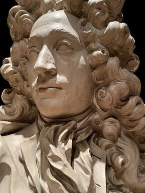 Large bust of a nobleman style Louis XIV in terra cotta 19thC.( 79cm ) Very decorative bust with fine details in very good condition. Dimensions : Height : 79 cm Width : 48 cm Depth : 35 cm Diameter foot : 22 cm France , early 19thC.
