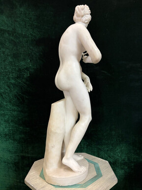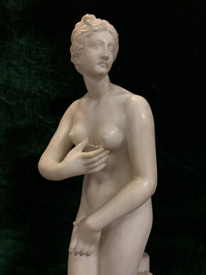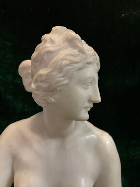 Nice alabaster sculpture from the 19th century. ( 79 cm ) Beautiful alabaster sculpture finely detailed representing Venus with a fish and 2 angels playing. Signed on the base at the back Dimensions : Height : 79 cm Width : 26 cm Foot diameter : 21 cm