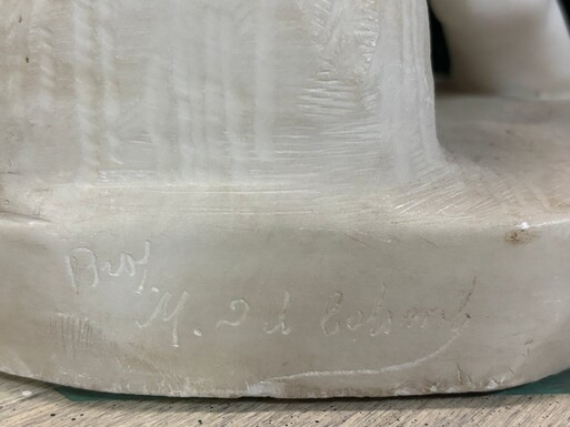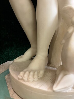 Nice alabaster sculpture from the 19th century. ( 79 cm ) Beautiful alabaster sculpture finely detailed representing Venus with a fish and 2 angels playing. Signed on the base at the back Dimensions : Height : 79 cm Width : 26 cm Foot diameter : 21 cm