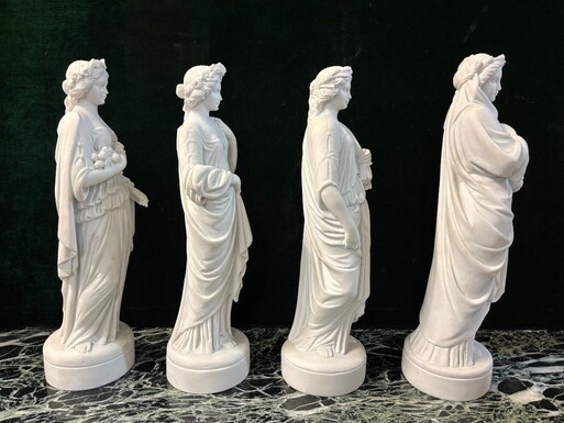 Set of 4 sculptures ‘the 4 seasons’ in 20th century Carrara marble. 4 sculptures in Carrara marble representing the 4 seasons. Dimensions : Height: 42 / 43 cm Base diameter: 11.5 cm The 4 sculptures are in very good condition.