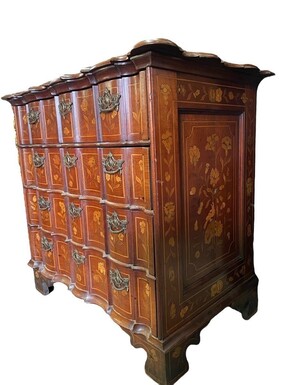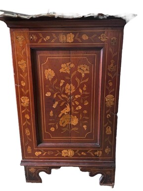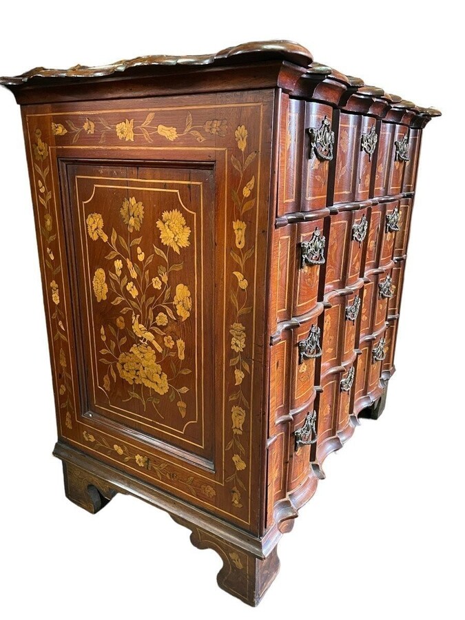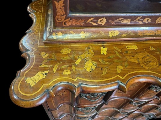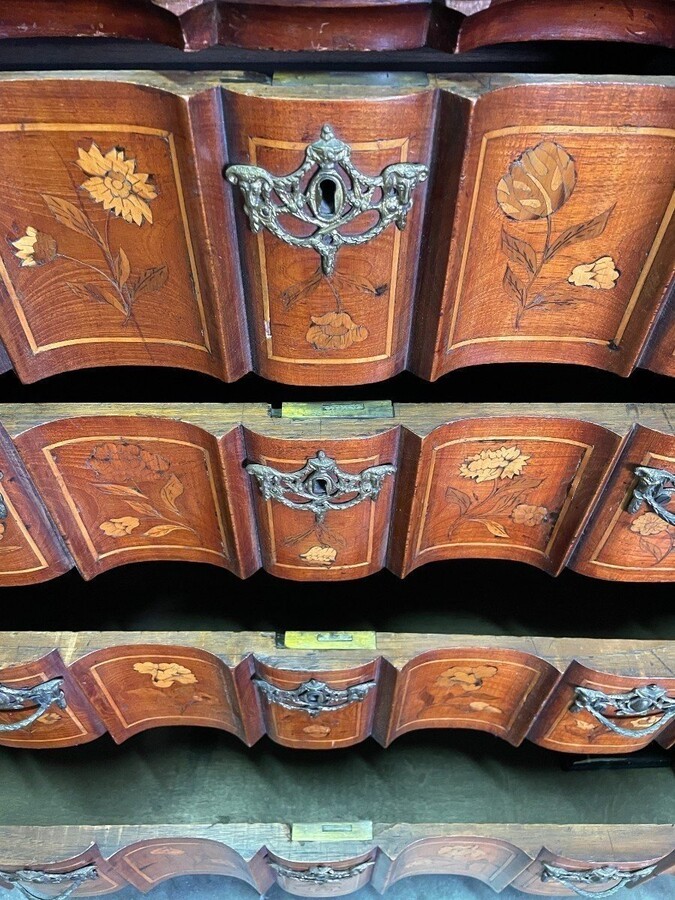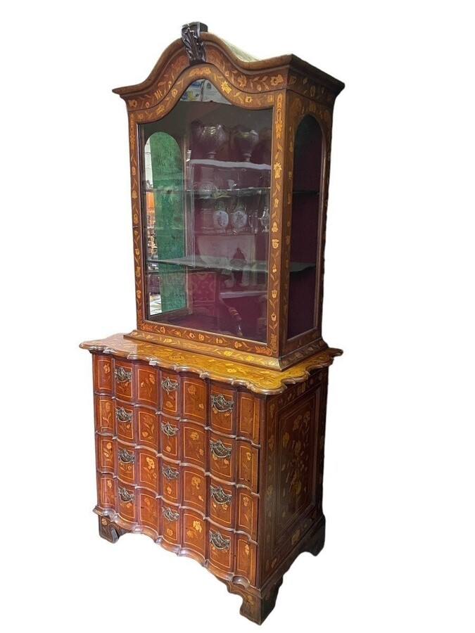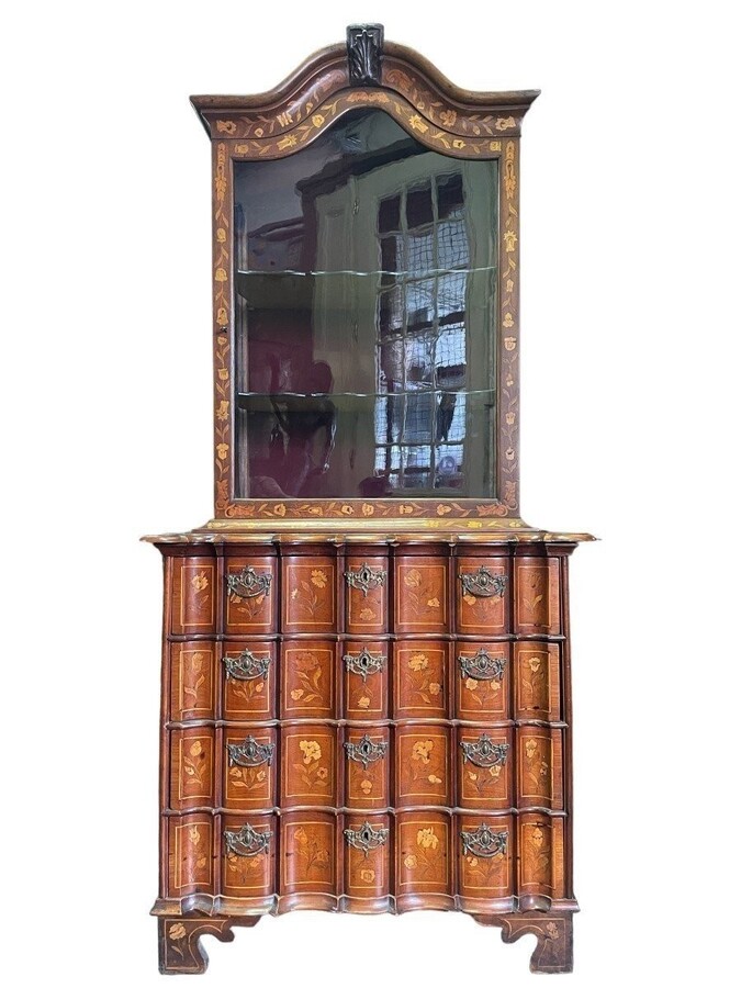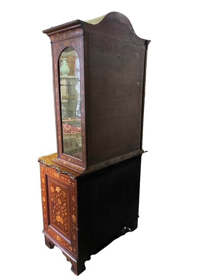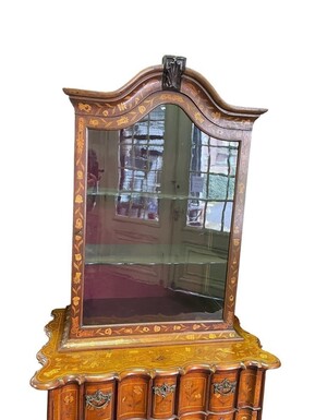 Elegant marquetry display case late 18th century early 19th century Display case in 2 parts with 1 showcase door at the top and 4 curved drawers underneath Furniture in good condition with normal signs of use