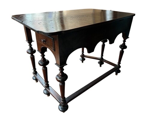 17th century walnut folding table. Elegant Louis XIV walnut and oak folding/writing table with folding system, 3 small drawers and folding top. Beautiful table in used condition with some minor defects.