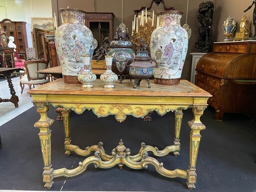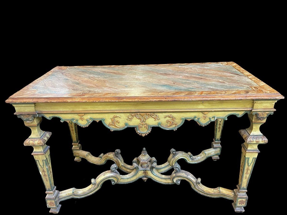 Centre table in painted wood in Regence style Decorative table with top painted in "faux marble " Dimensions : Width : 137 cm Height : 87 cm Depth : 67 cm Nice table from around 1900