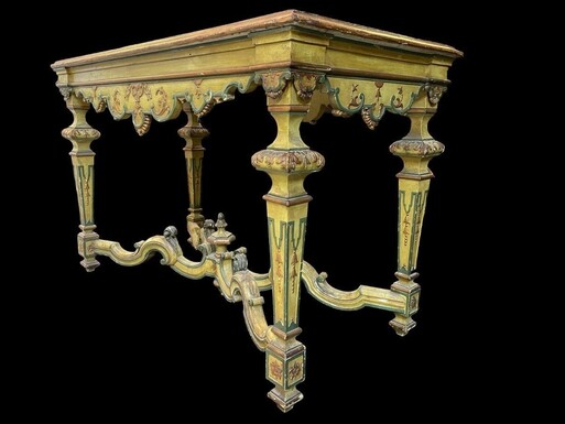 Centre table in painted wood in Regence style Decorative table with top painted in "faux marble " Dimensions : Width : 137 cm Height : 87 cm Depth : 67 cm Nice table from around 1900