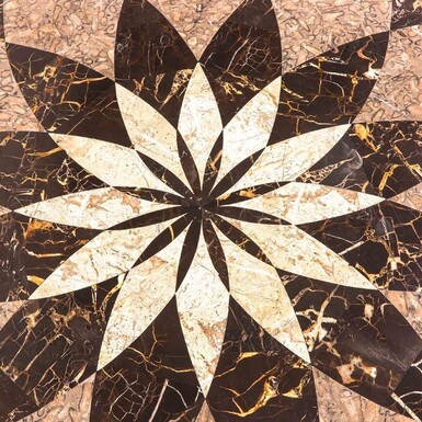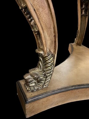 Decorative centre table with inlaid marble top 20th century. Nice 3-leg table decorated with ornaments, shells and animals with a top in marble mosaic on top. Dimensions : Height : 83 cm. Diameter : 112 ( top ) , 115 cm table edge
